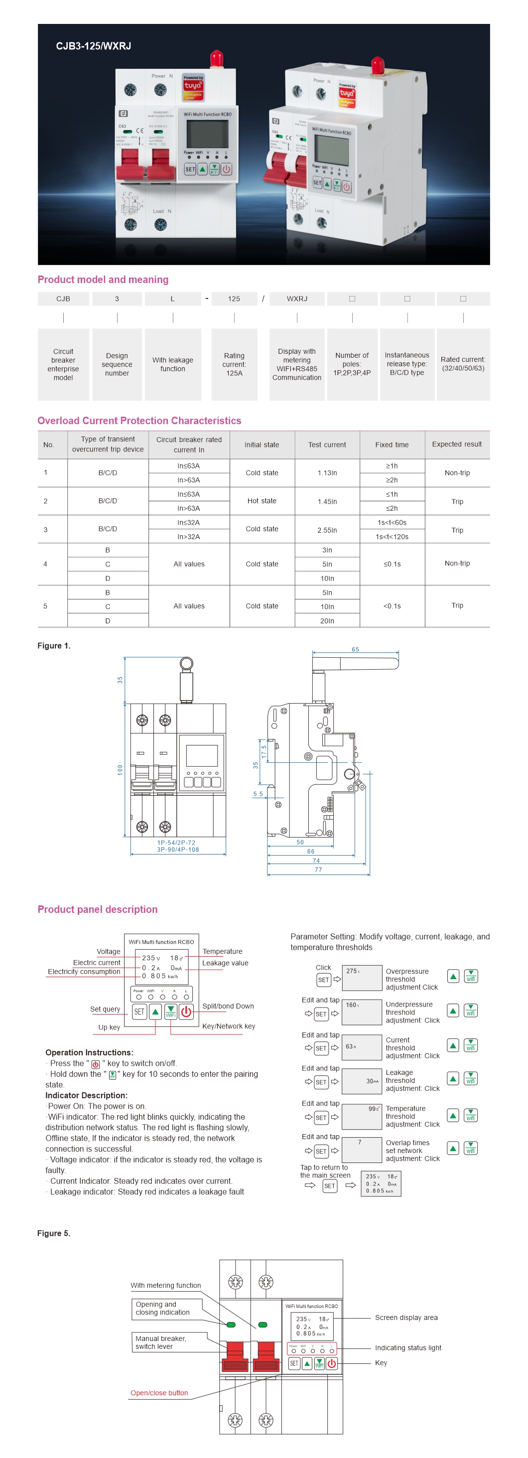 | Leakage parameters | Rated residual operating current 10-90mA can be set, and the operating time is less than or equal to 0.1s. |