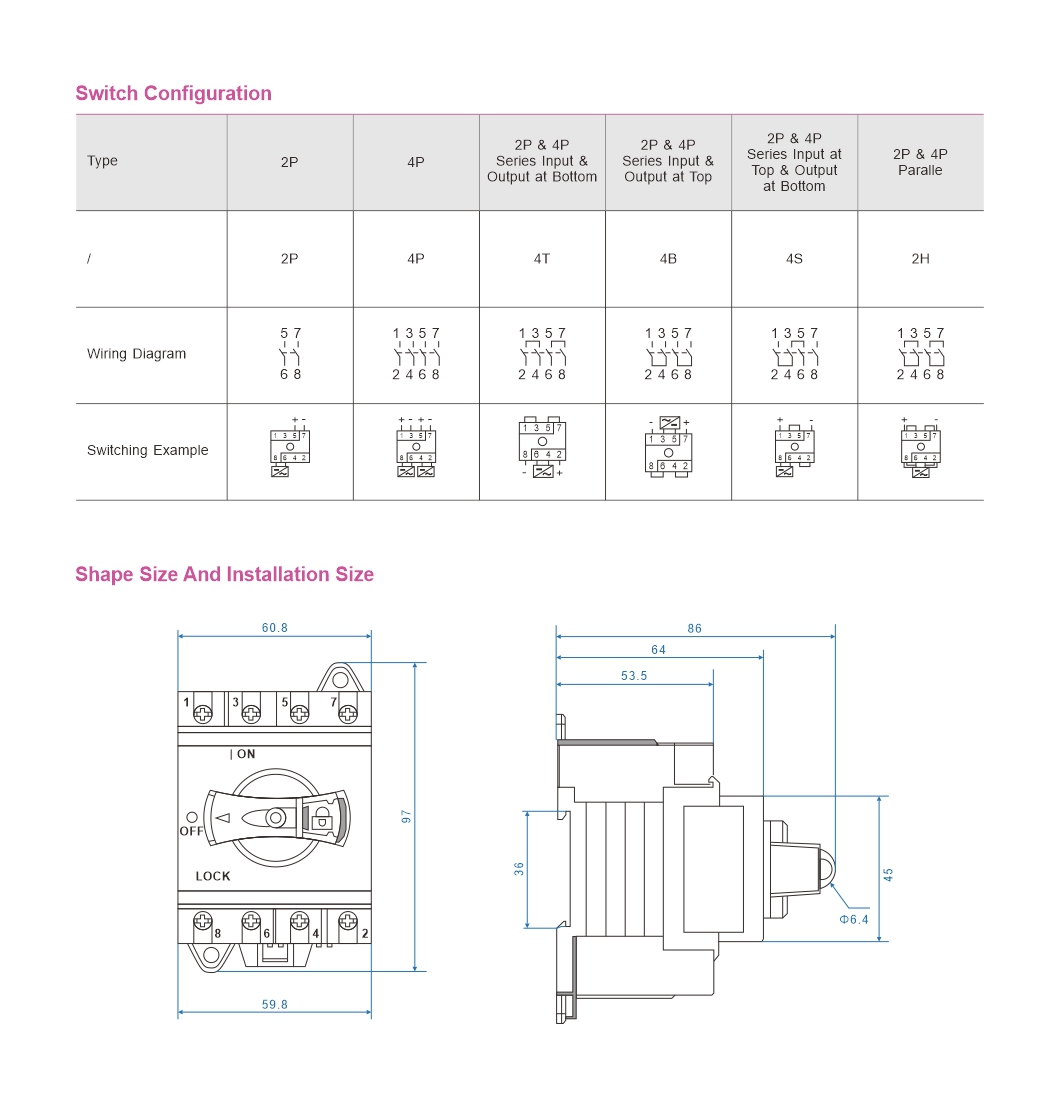 Beyond its core safety and performance attributes, the CJDS series also offers non-polar wiring for simplified installation, with “+” and “-” terminals that can be freely interchanged, reducing the risk of wiring errors. Its robust mechanical design delivers up to 18,000 mechanical operations and 2,000 electrical operations, ensuring consistent performance over decades of use. With a wide operating temperature range of -40°C to +85°C and resistance to dust and humidity, it is engineered to withstand the rigors of outdoor deployment, providing reliable isolation and protection for your PV system in any climate.
