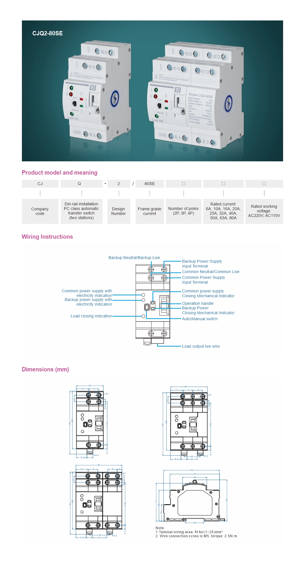 6.Integrated power sampling lines (eliminating external control wiring) enable automatic transfer functionality upon completion of main circuit connections.